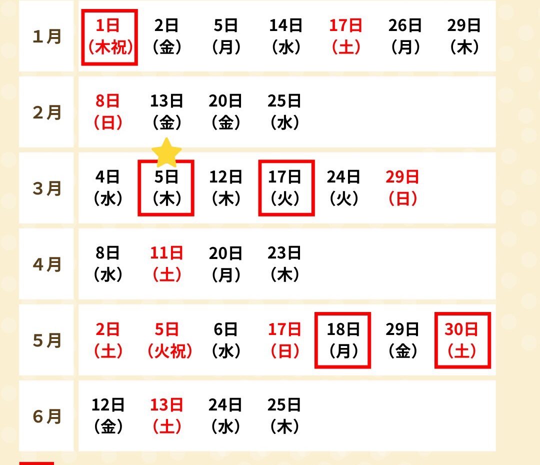 本年の一粒億倍日(上半期)のご案内